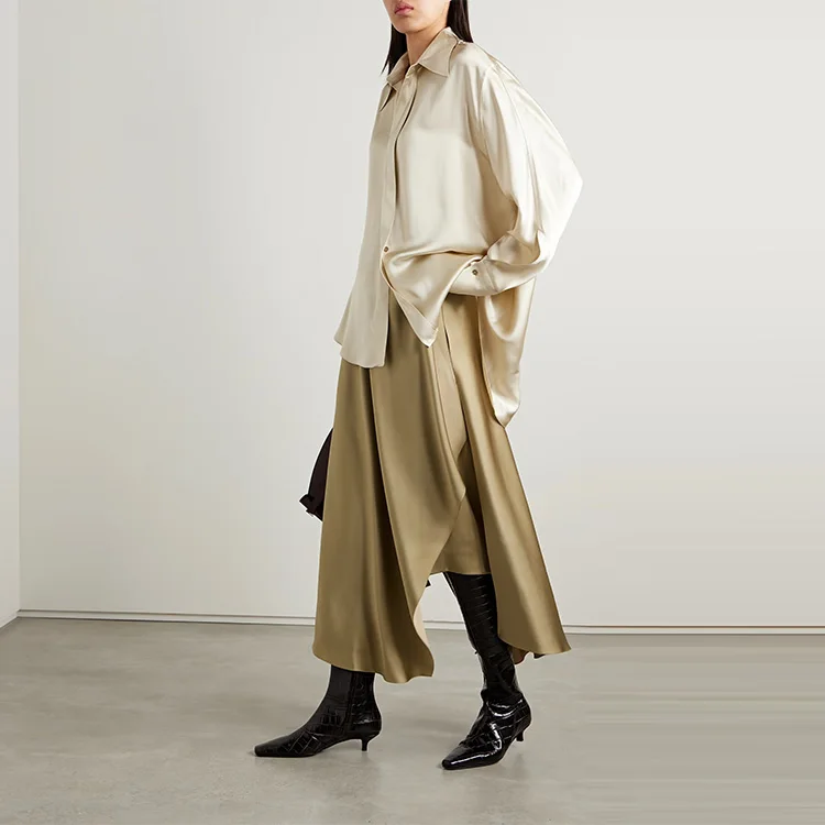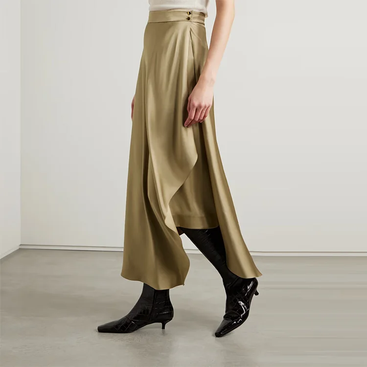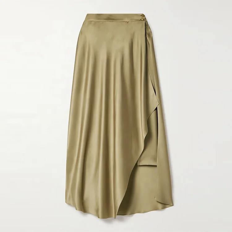 Clothing Manufacturer Custom Spring Summer Beige High Waist Fashion Elegant Satin Women Silk Skirt